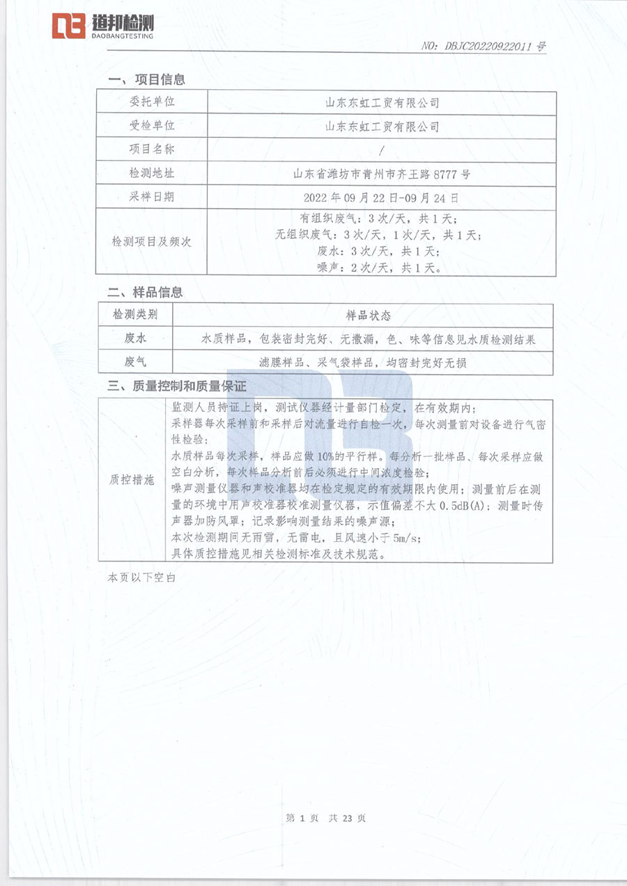 山東東虹工貿(mào)有限公司環(huán)境信息公開(kāi)表